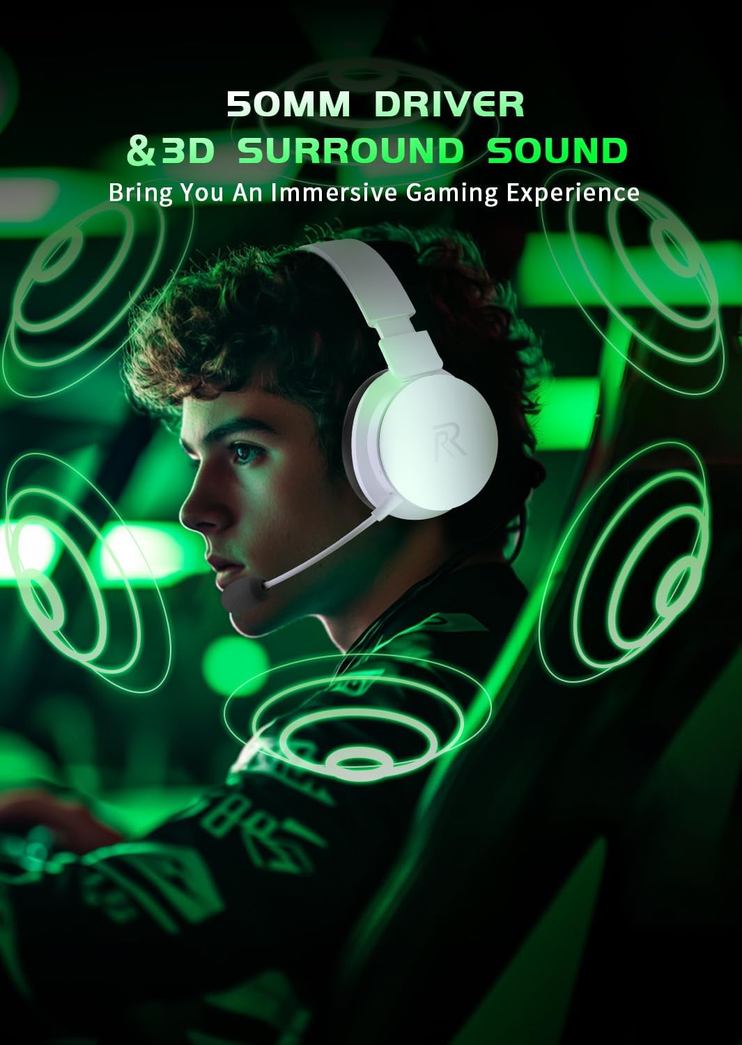 RYR Wireless Gaming Headset, Bluetooth 5.3, 3D Surround Sound, Rotatable Earmuffs, Wireless Gaming Headphones with Noise Canceling Microphones for Xbox Series X|S, Xbox One, PS5, PS4, Mac-Blackwhite