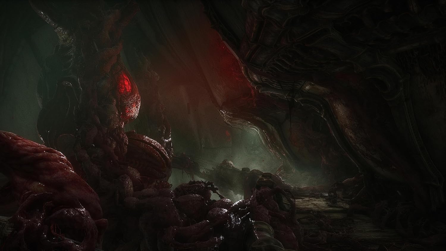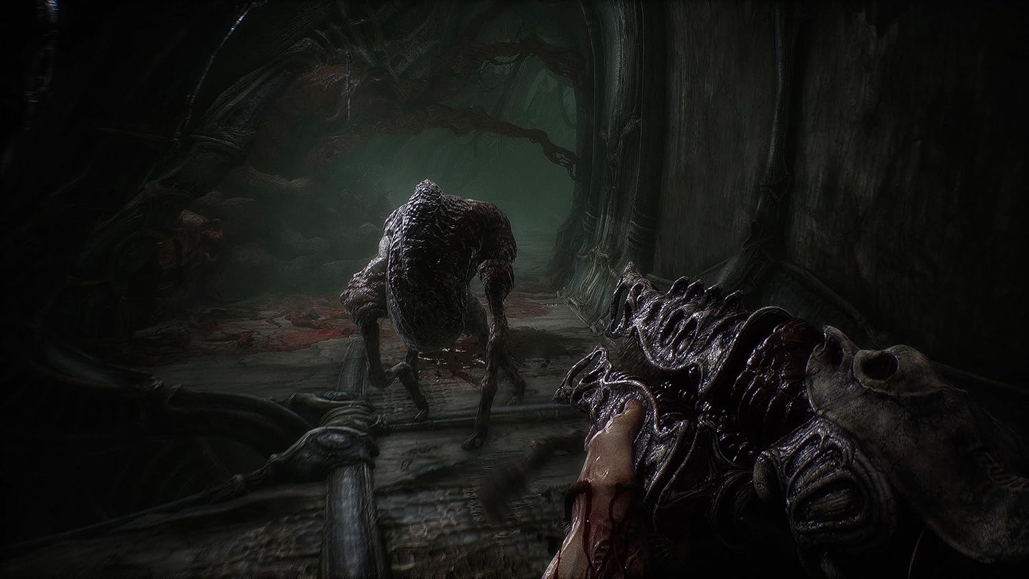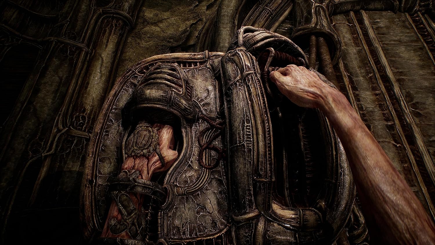Scorn takes place in an open-ended world with different interconnected regions with mazes, rooms and paths to discover