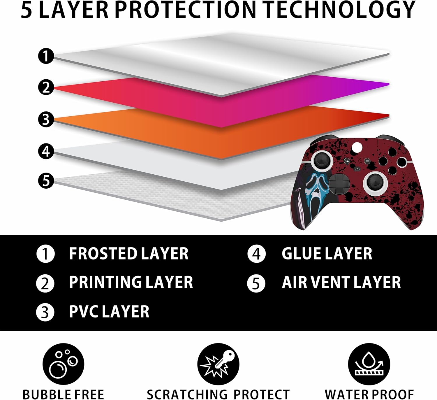 Thanks for 5 protection layers, XBX series x wrap is ultra-thin, durable, no fading, waterproof, bubble-free, scratch resistant and especially no glue residue