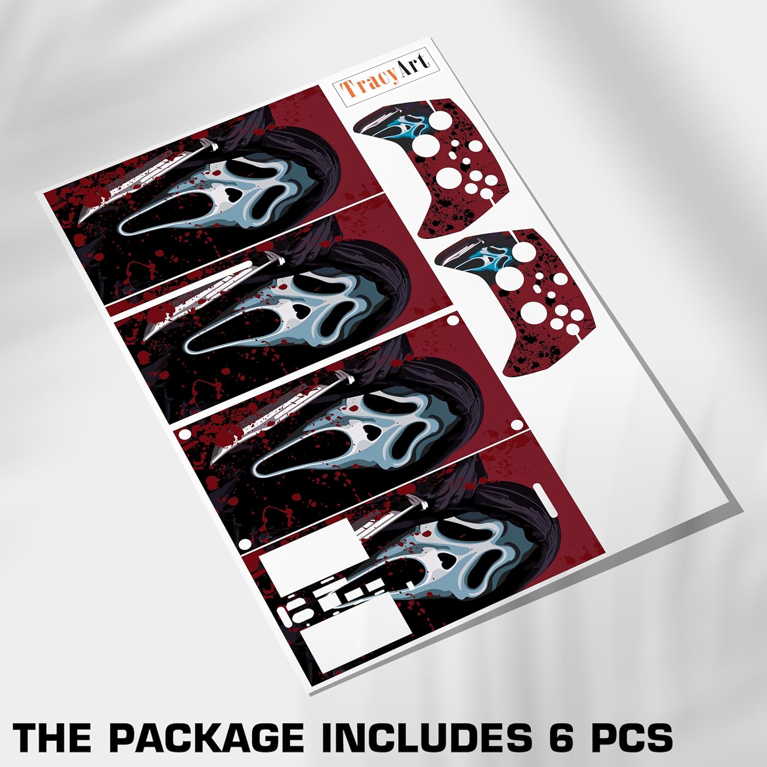 Skin Sticker Compatible with XBX Series X Cover – Horror Face, 2 Controller Skins & Console Skin – No Bubble, Full Protection, Removable