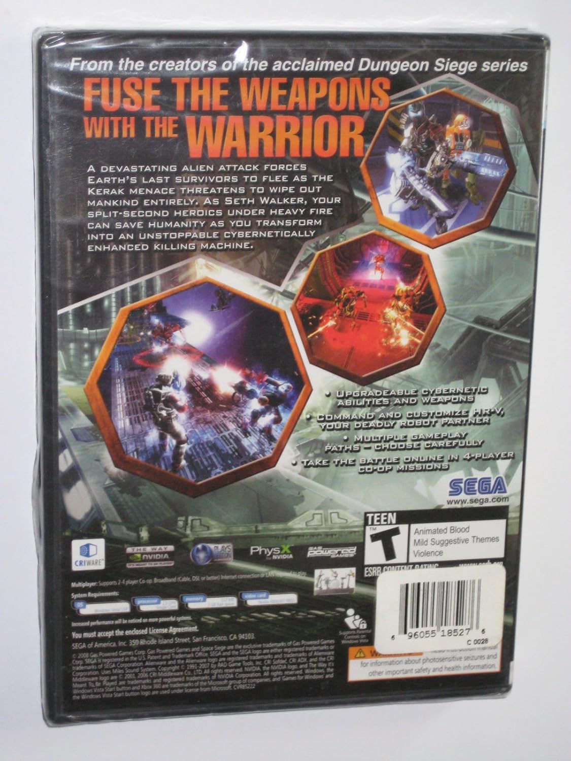 From the creators of the acclaimed Dungeon Siege seriesProduct InformationA devastating alien attack forces Earth’s last survivors to flee as the KerakMenace threatens to wipe out mankind entirely as Seth Walker your split-secondheroics under heavy fie can save humanity as you transform into an unstoppablecyberically enhanced killing machine.Space Siege places you in the shoes of Seth Walker a robotics specialist whomust preserve the final remnants of the human race. During the course of thegame you are forced to make the most harrowing of choices: will you sacrificeyour own humanity to save the human race?Fuse the weapons with the warrior! Product FeaturesTactical Combat ActionOutsmart your enemies by setting up ambushes dodging attacks duckingbehind cover and using any of the multiple special abilities available to you.Multiple Gameplay PathsDefine your game experience with the decisions you make. Will you remaintruly human in the face of insurmountable odds? Or will you enhance yourabilities with cyberic technology to even the score? Customize yourcharacter with multiple skills and special abilities that fit your style ofplay.Customizable Robotic PartnerUpgrade HR-V your robot panion with armor weapons and specialequipment. Command HR-V to perform offensive and defensive tactical bat maneuversor bine your efforts and unleash special attack bos.Chilling Sci-Fi StoryFollow a multi-chapter storyline and make key decisions that determine thebest means to deal with the ferocious alien menace. Interact with dozens ofcharacters with their own histories and personalities – no more “genericNPCs.”Online MultiplayerUp to four players can play cooperatively in a separate multiplayer campaigndesigned specifically for online play. Customize enemy difficulty and toughnessto best fit your skill level.Futuristic Combat TechnologyAccess high-tech weaponry and armor in addition to advanced cybericupgrades that will offer powerful abilities with both risks