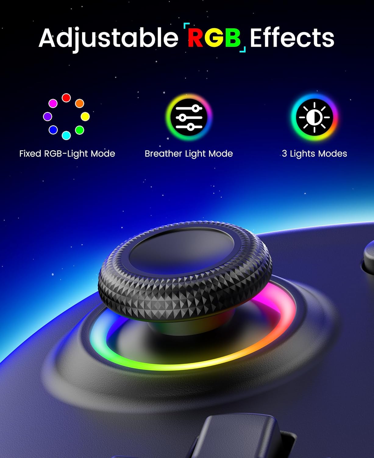 Switch Controller with RGB Joystick: The joystick aperture of the switch remote can be set with 8 different colors of lights, and three light modes: static mode, breathing mode or flashing mode. You can adjust the Coolorful lighting of the game controller switch to enjoy different immersive gaming experiences. In addition, the screenshot function of the switch pro controller allows game enthusiasts to share exciting moments in just one second, doubling the fun of gaming