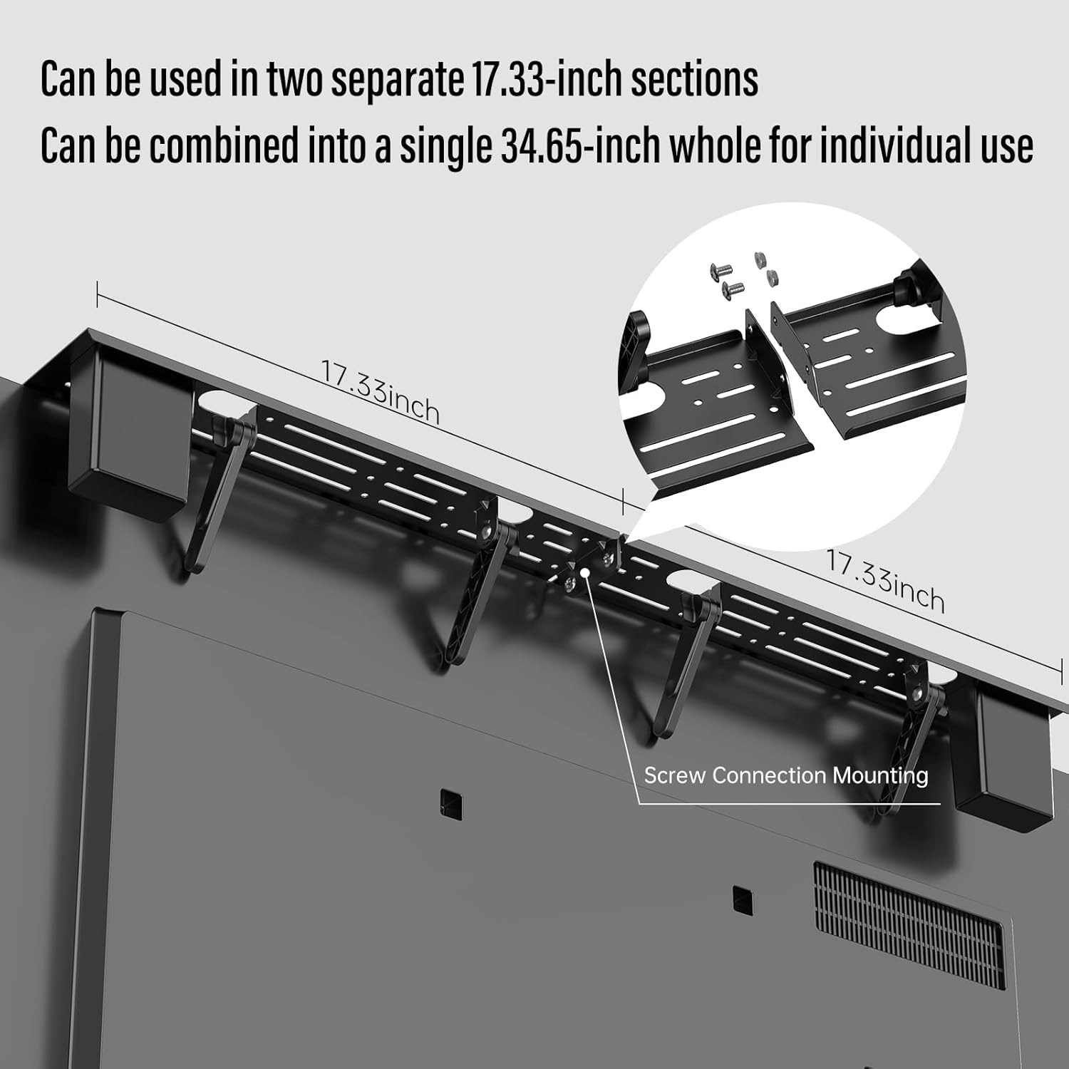 Usage: Can be split into two 17.33-inch units for individual use or assembled into one 34.65-inch unit,for usedesigned for use with wireless speakers; gaming consoles; media boxes; remotes, pictures, plants and more. Not adapt to curved panel display.Weight capacity 13.2lbs.