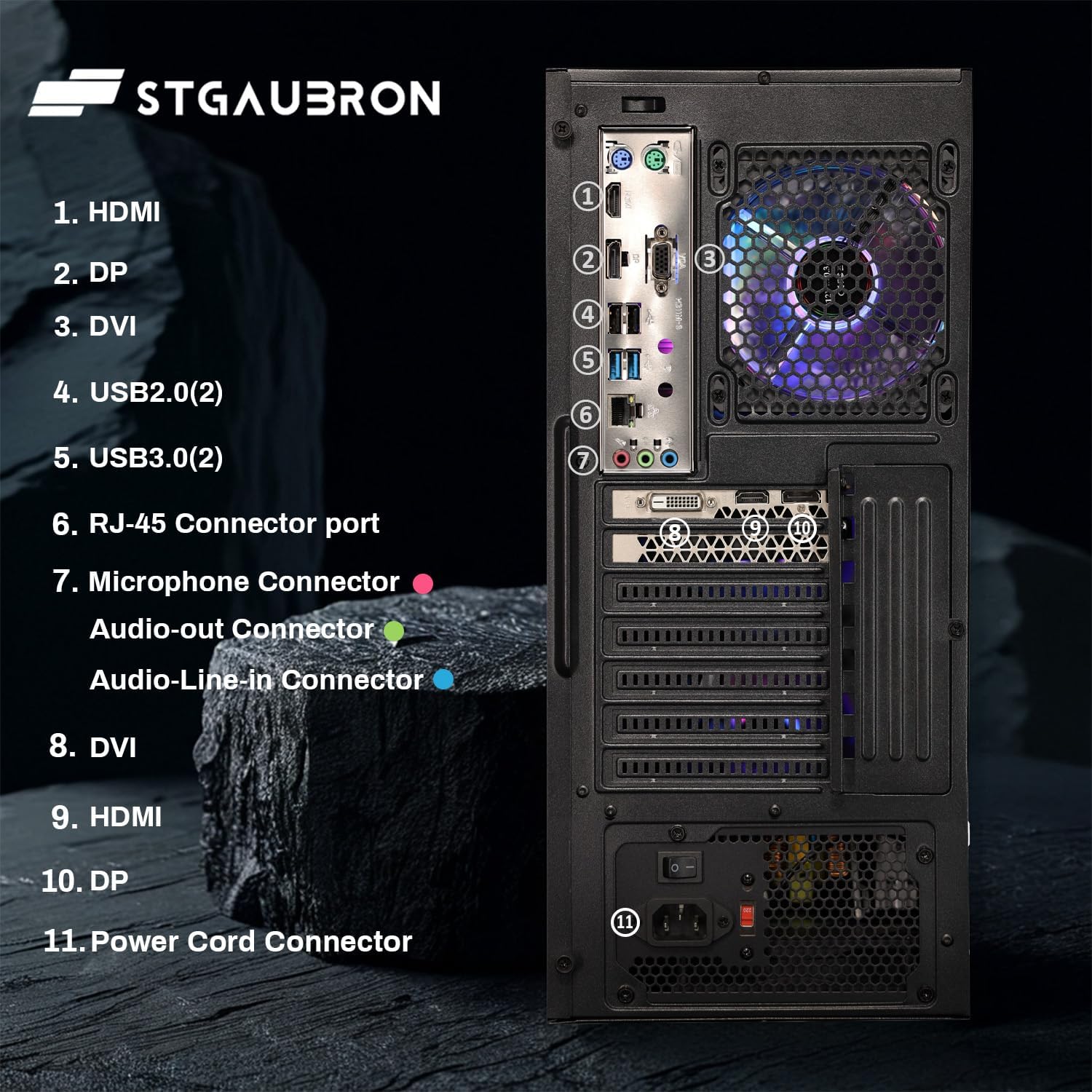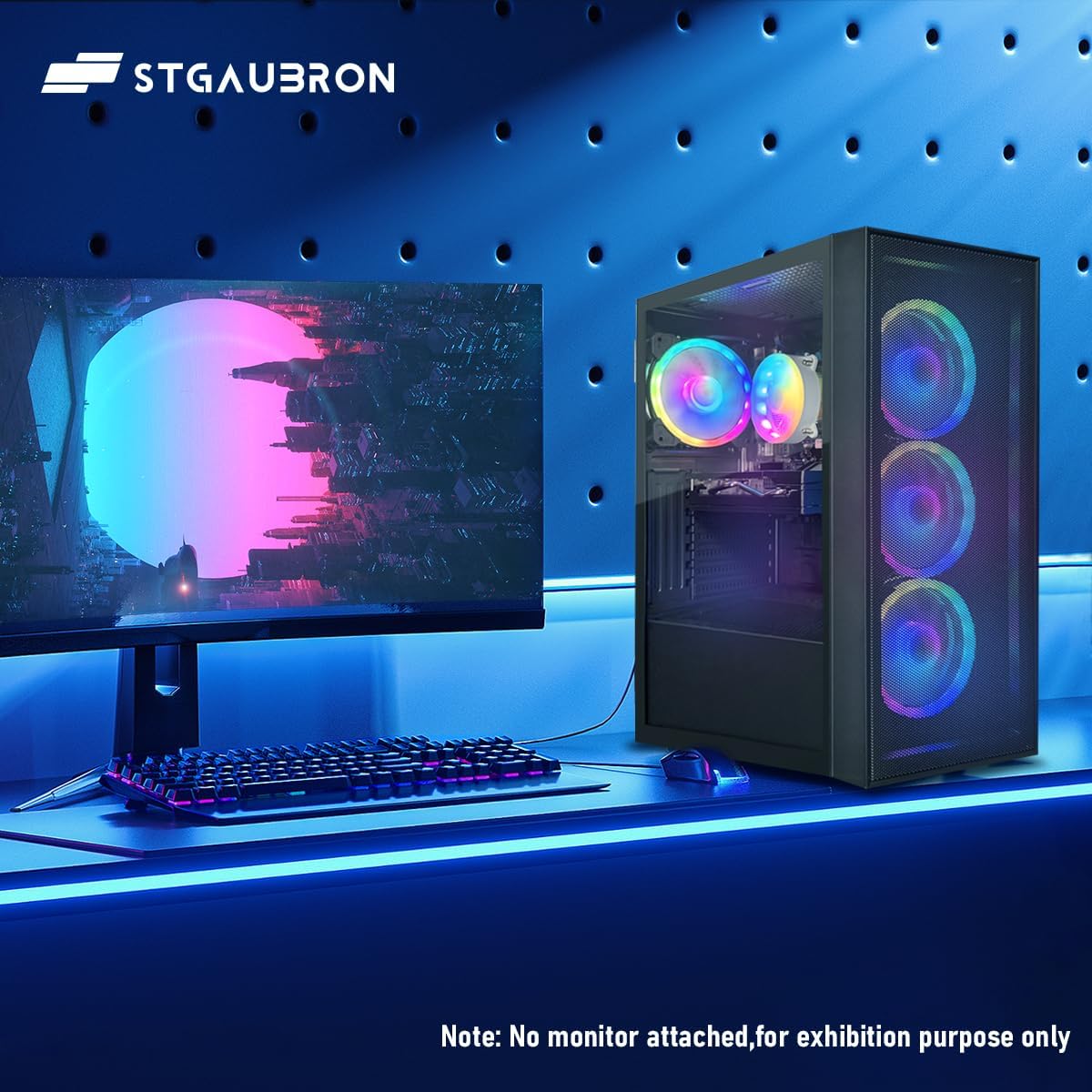 STGAubron Gaming PC Computer Desktop, Radeon RX 580 8G, Intel Core I7 8th up to 4.10 GHz, 16G DDR4, 512G SSD, WiFi 6 & BT 5.2, RGB Fan x4, Windows 11 Home