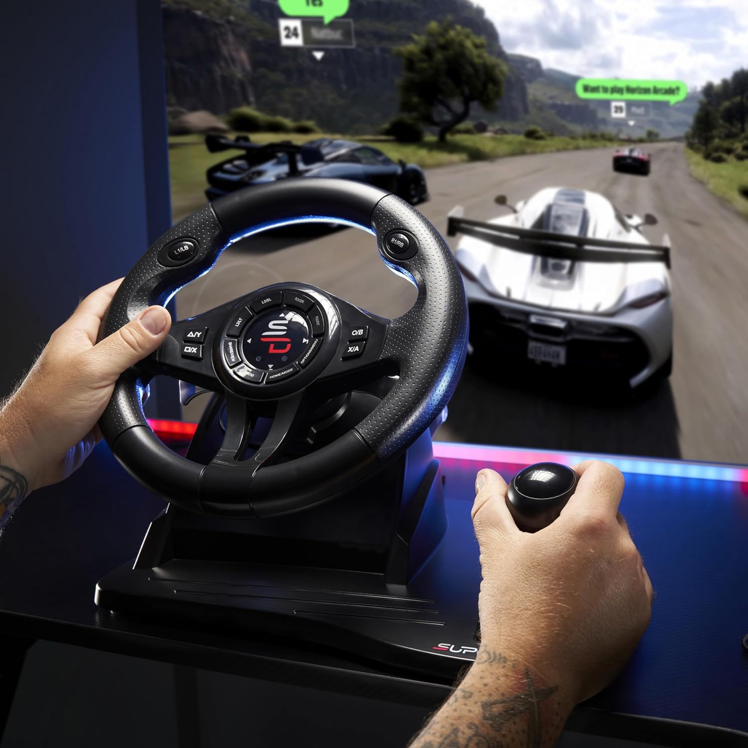 SUBSONIC Superdrive – GS550 steering wheel with pedals, paddles, shifter, vibration racing wheel for Switch 2, Switch, Xbox Serie X/S, PS4, Xbox One, PC
