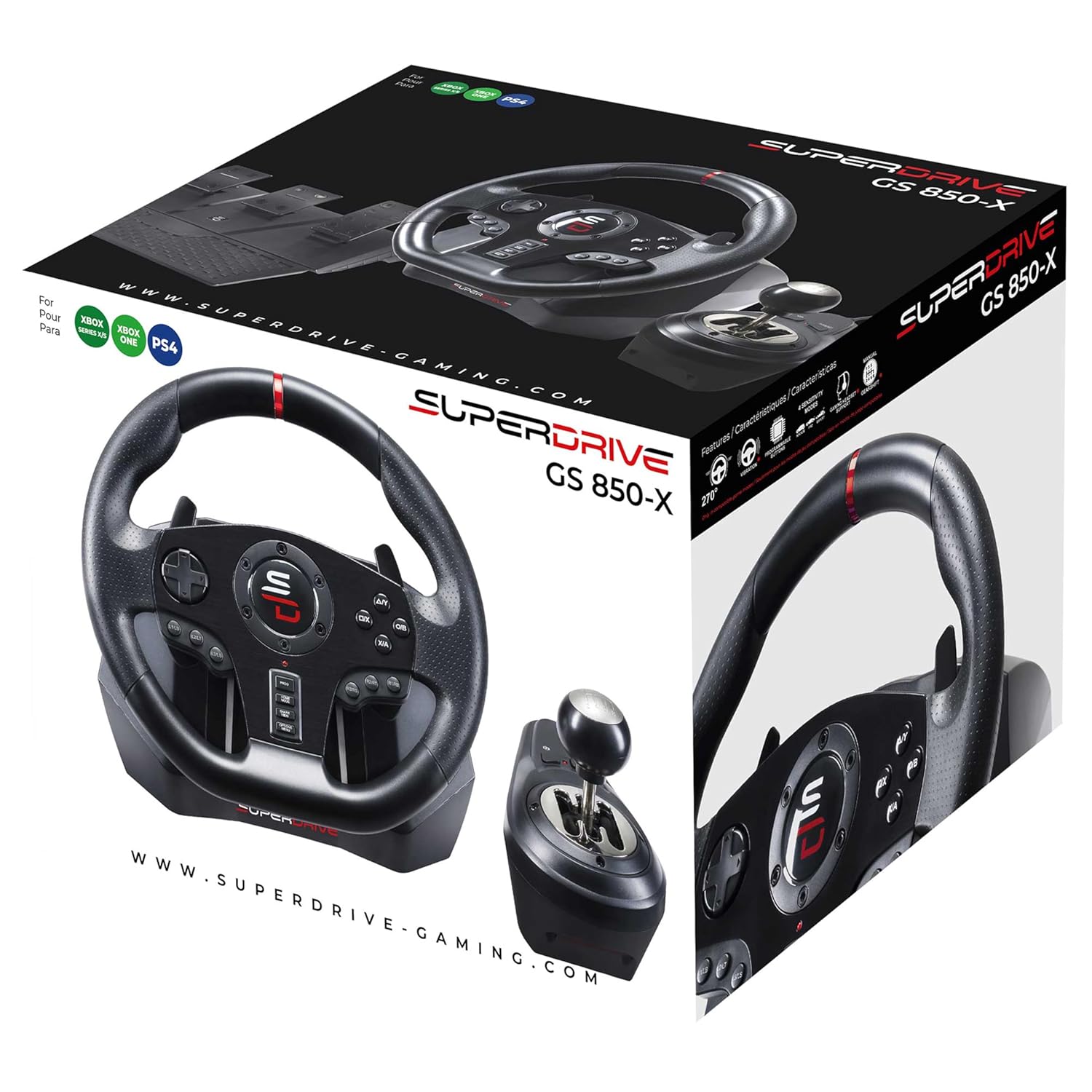 SUBSONIC – Superdrive GS850-X Steering Wheel – Racing wheel with gear stick and 3-pedal set – 270° rotation – Adjustable vibrations – For Xbox Series X/S, PS4, Xbox One – Black