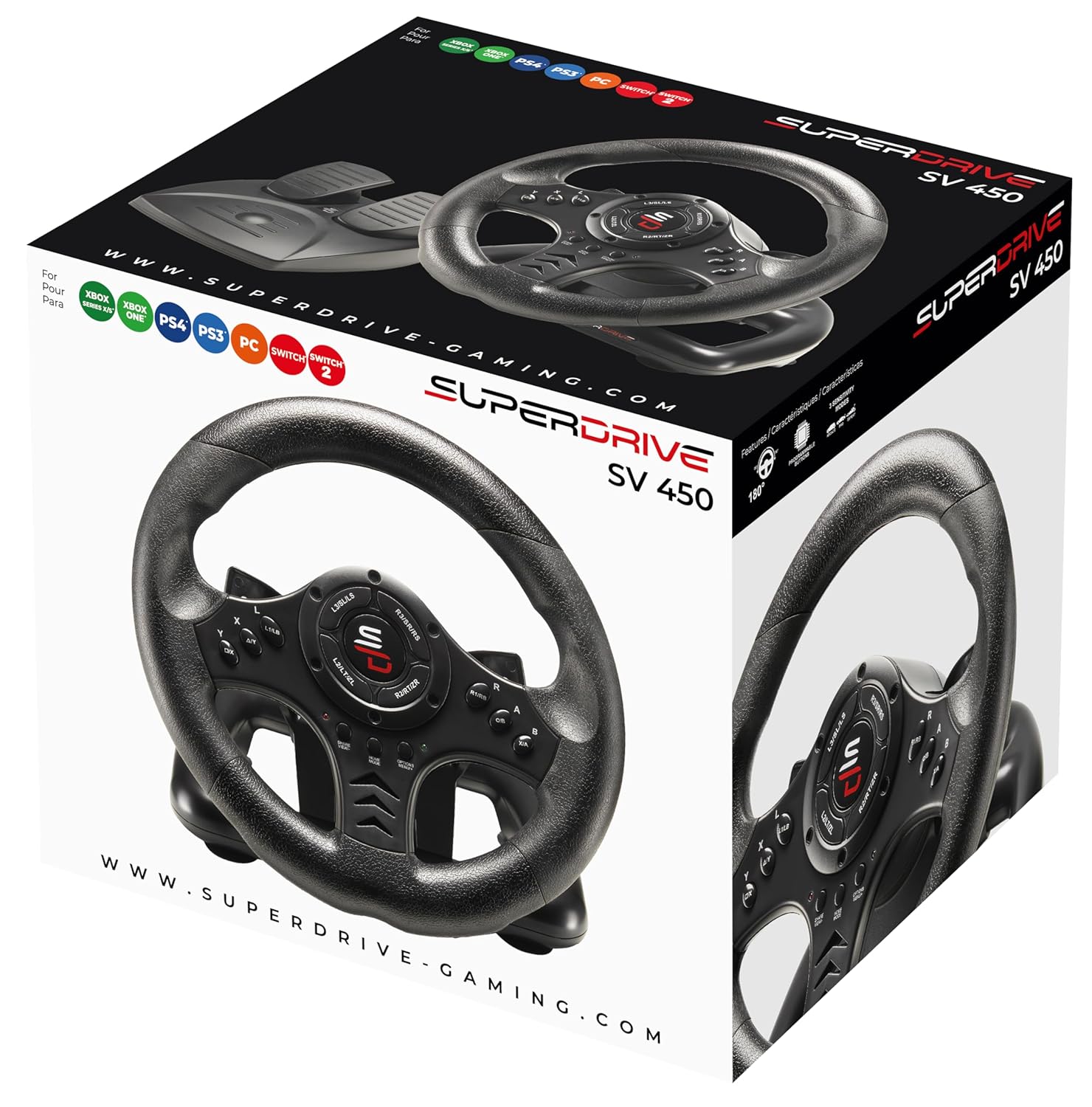 SUBSONIC – Superdrive SV450 Racing Steering Wheel with Pedals and Shifters. For Xbox Series X/S, Switch 2 / Switch, PS4, Xbox One and PC – Black