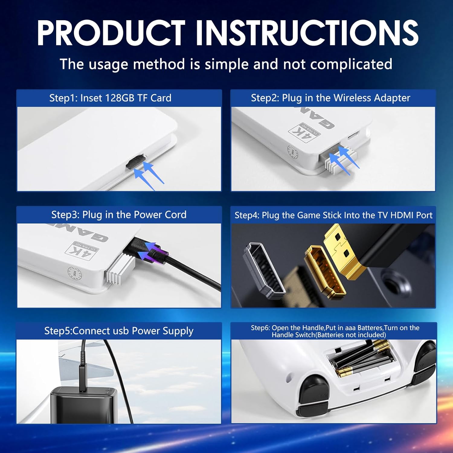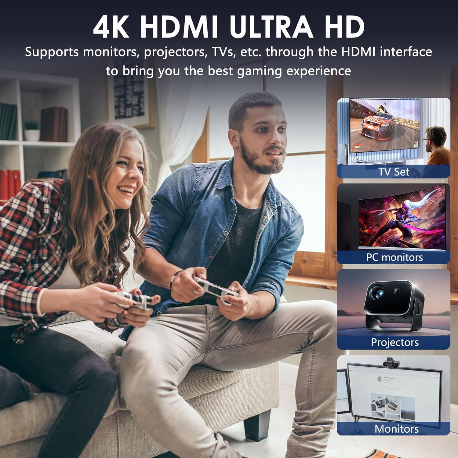 4K HDMI High-Definition Picture Quality: This gaming consoles comes with an extended HDMI cable to help you connect to different displays, it is easy to connect to TVs, projectors, monitors via HDMI, while enjoying high-definition picture quality and smooth performance, you will relive retro games with a good mood!