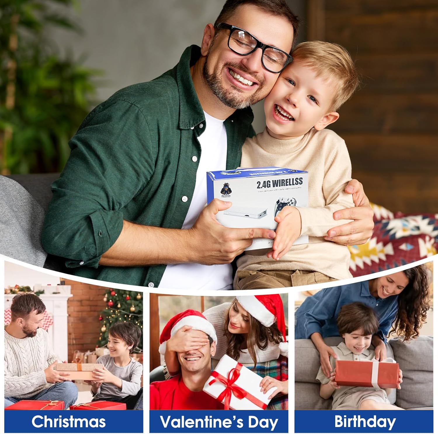 New Configuration: Equipped with dual 2.4GHz wireless controllers to support two-player games, stable connection, no delay, say goodbye to the constraints of cables, the handles are comfortable to hold, you can start a wonderful game time with friends or family!