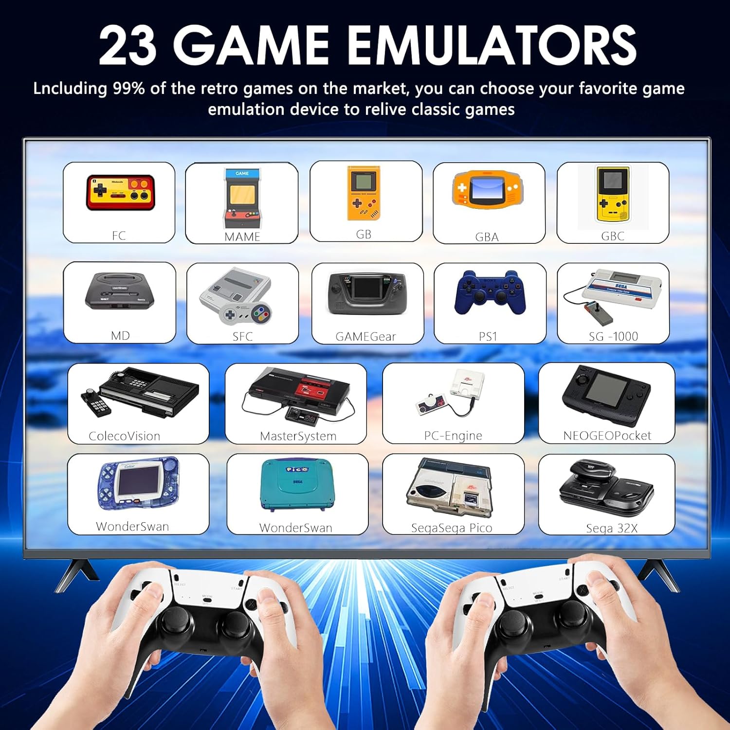 128GB TF Card with Massive Game library: This retro game console is equipped with 23 emulators and more than 20,000 classic games. No need to download and suitable for players of all ages, relive the happy times of classic games!