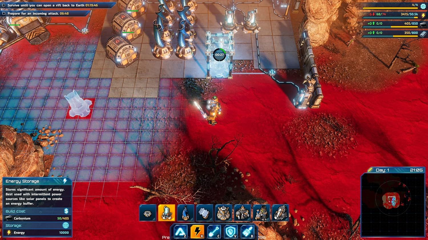 Base building – your task is to construct a two-way Rift connected to Earth; this will be a very complex undertaking requiring as you build up an intricate Chain of mines, refineries, power plants, and research facilities to complete this mission