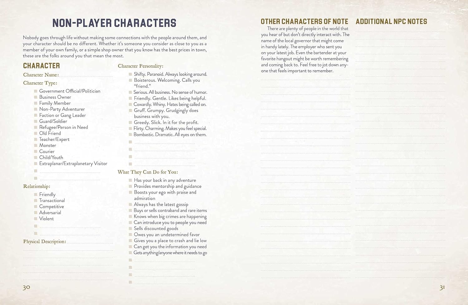 Chronicle every step of your RPG and record details about your characters, party, quest, and more with this customizable gaming journal for all your adventures.