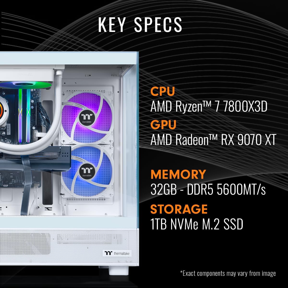 Thermaltake LCGS View 7897XS-270 Gaming Desktop (AMD Ryzen™ 7 7800X3D, 32GB 5600MT/s DDR5 RGB Memory, AMD Radeon™ RX 9070 XT, 1TB NVMe M.2, WiFi, Windows 11) V27S-B650-97X-LCS
