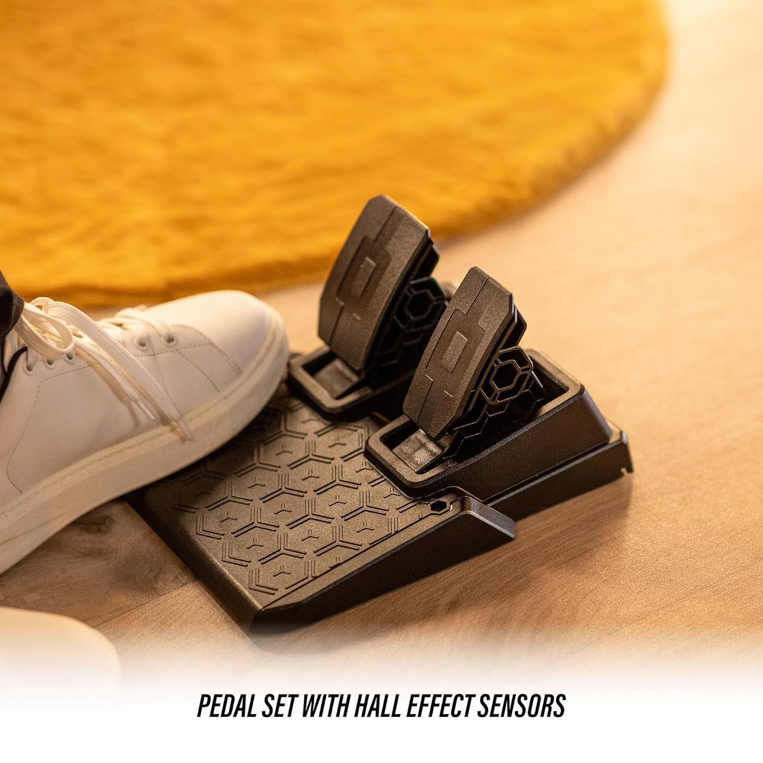 A 2-pedal pedal set with accelerator and brake is included. The pedals feature Thrustmaster’s patented H.E.A.R.T. Hall effect sensors to ensure that the product will retain its razor-sharp precision for years to come. The pedal set’s compact design allows it to even be installed and used in small spaces.