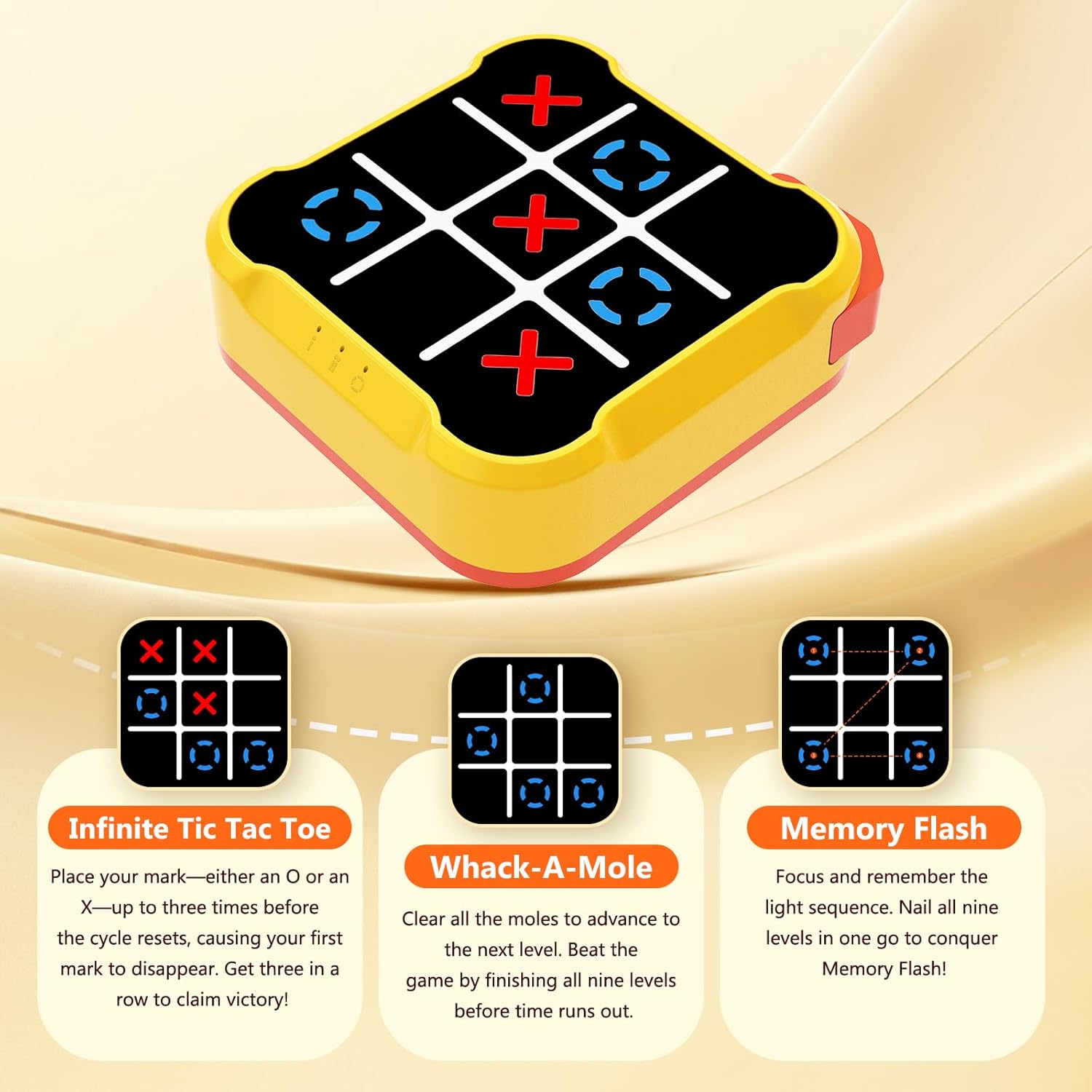 Tic Tac Toe Game, 3-in-1 Game Machine, Handheld Electronic Puzzle Games, Portable Travel Game for Trip, Office Break, Queue Time, Birthday Gift for Kids Adult