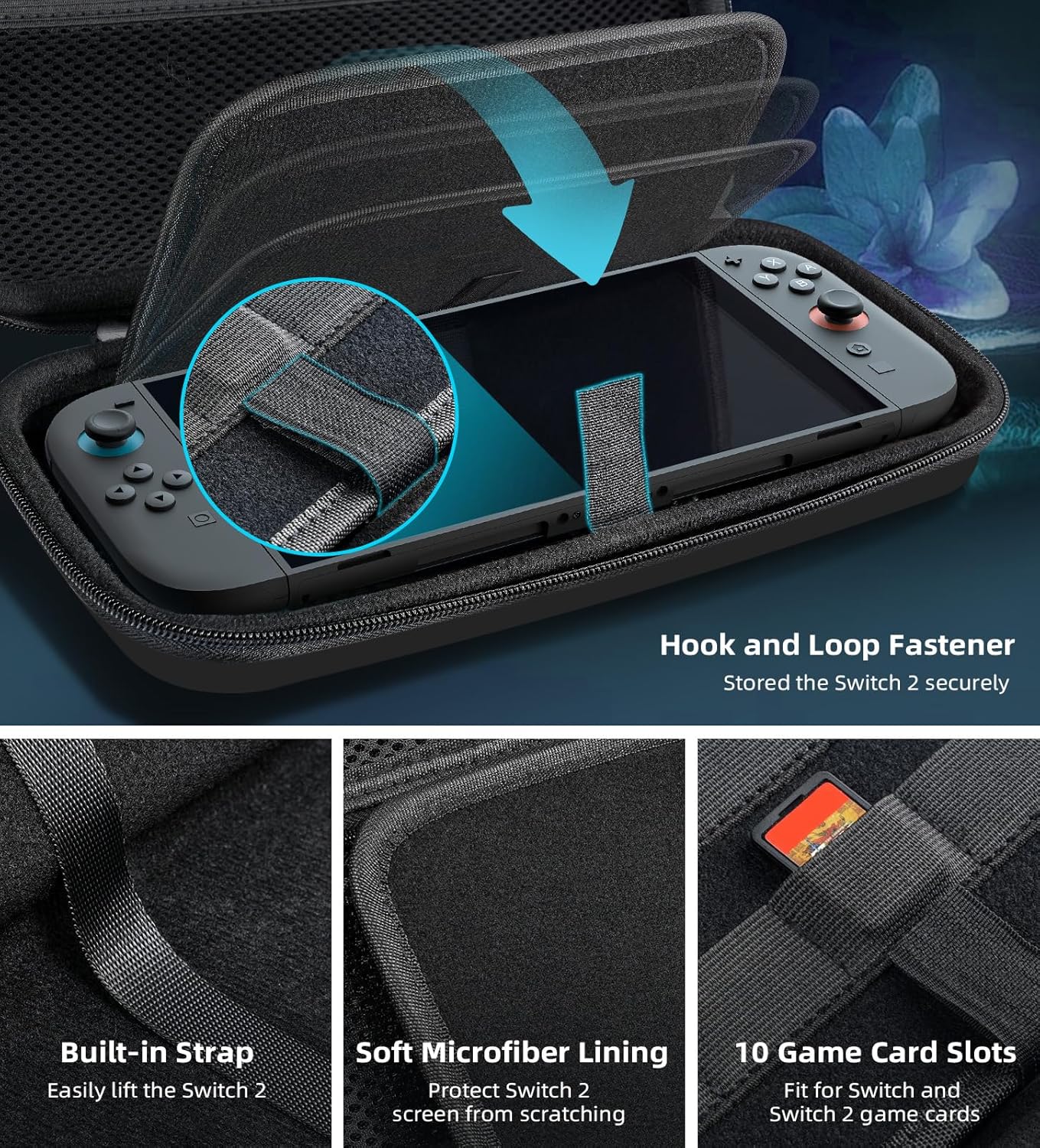 Compatibility: The Switch 2 carrying case is designed for Nintendo Switch 2. Built-in hook and loop fastener is used to secure Switch 2 inside the case to prevent it from falling out when the case is opened. The drawstring for easy removal of Switch 2.