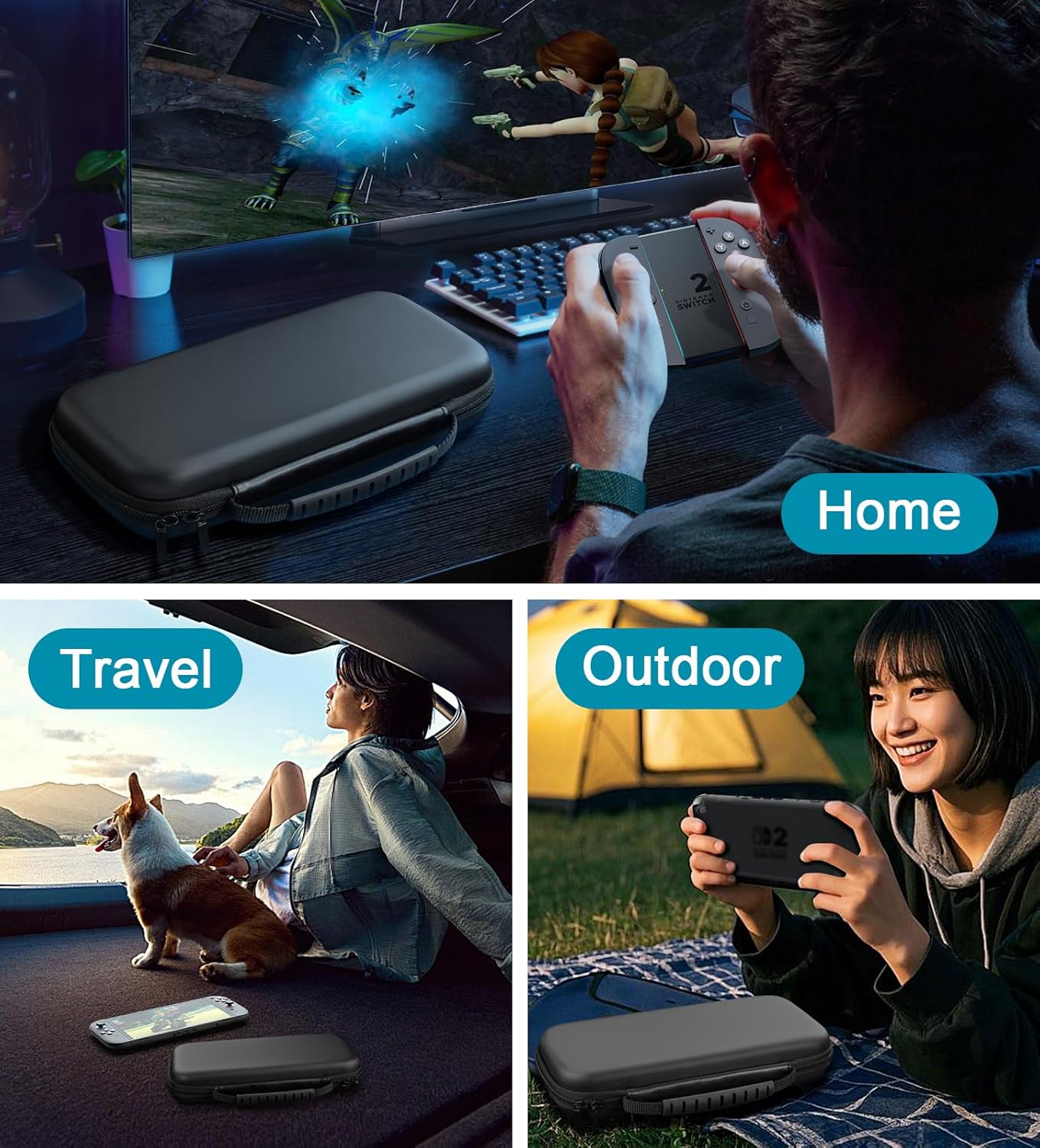 Easy to Use: The smooth double zipper design of the carry case allows you to take out and put in all the Switch 2 accessories quickly and easily. The Switch 2 storage case also has a sturdy rubberized handle that makes it easy to carry around. It meets your travel and on-the-go needs.