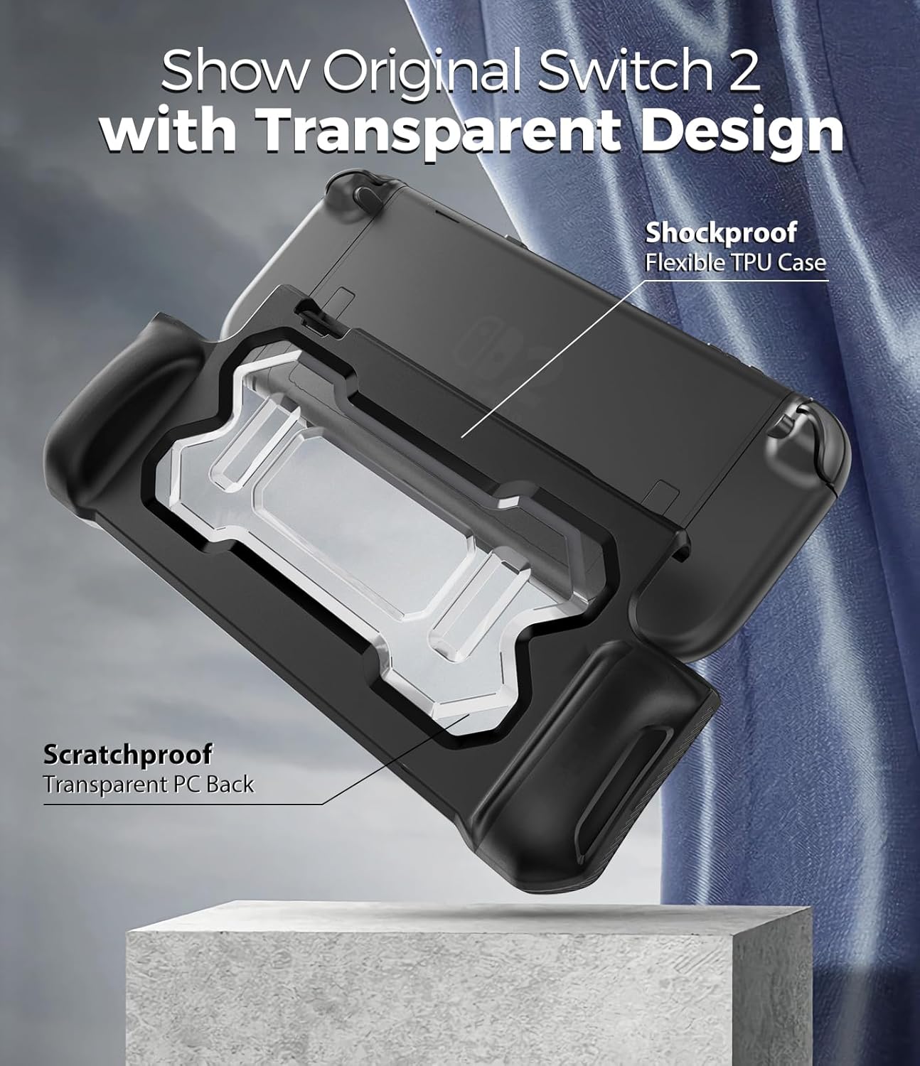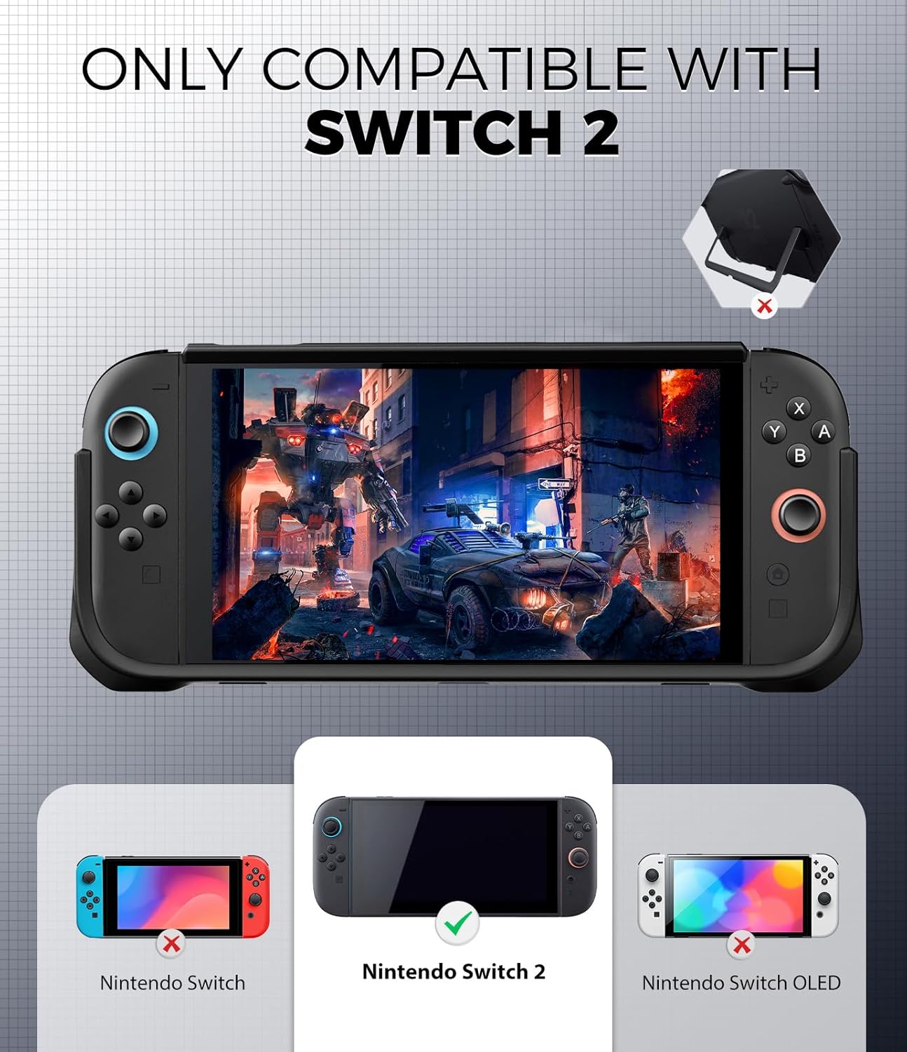 360° Protection: Made of shock-absorbing flexible TPU and scratch-resistant tough PC material, protects your Switch 2 from everyday bumps, drops, falls, scratches, and fingerprints. Note: Switch 2 case is not compatible with the stand.
