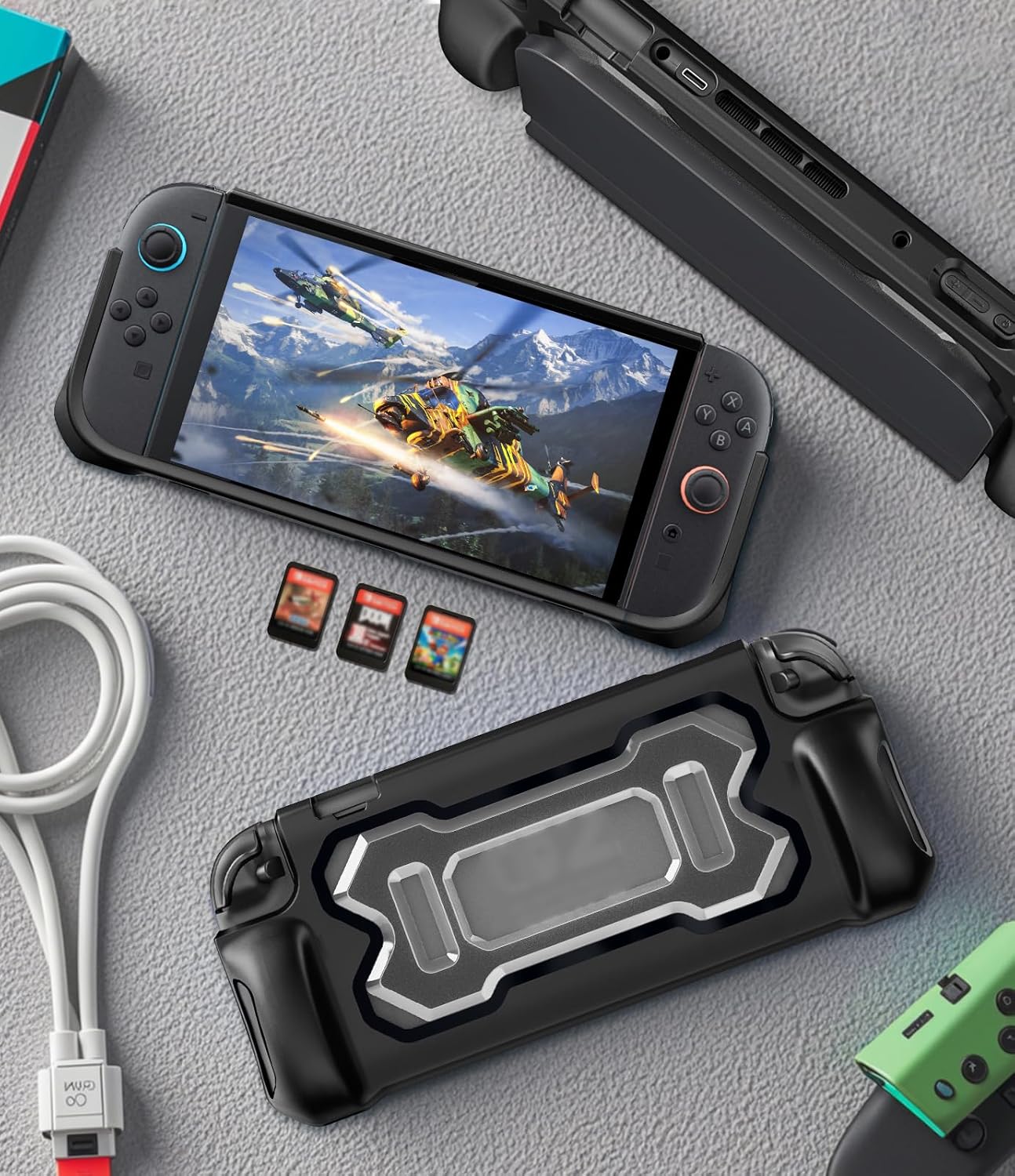 Ergonomic Design: The ergonomically designed handles for the Switch 2 TPU protective case are easy to grip and comfortable for long-time handheld play. The handle also has anti-slip design, allowing you to hold your Switch 2 firmly.