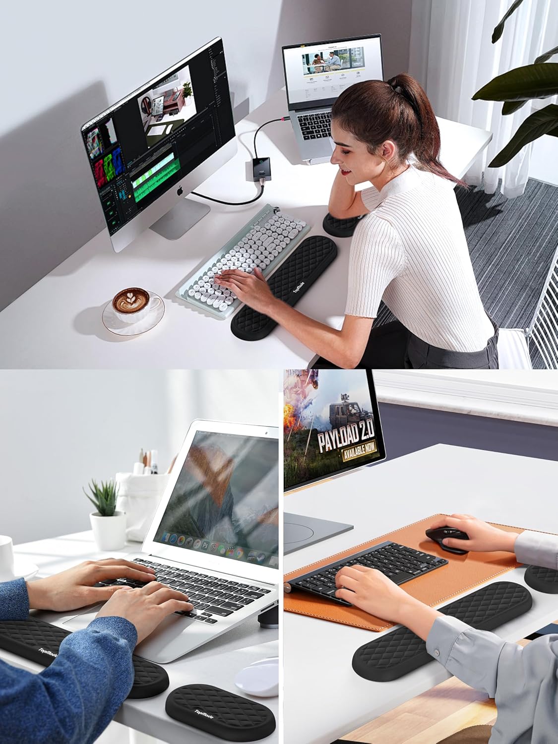 【Perfect Ergonomic Design】 This wrist rest set is specially designed to protect your wrists during long periods of keyboard use, improve wrist posture, prevent joint and wrist problems, and relieve pressure on the elbows and shoulders during long periods of computer use