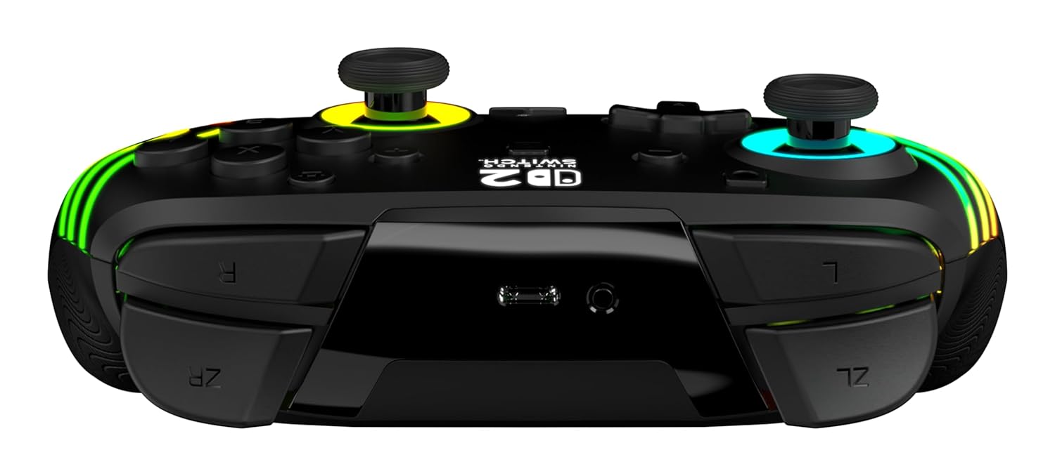 Brighten up your gaming experience with the Afterglow Wave Wireless RGB Gaming Controller for Nintendo Switch™ 2. This controller also works with Nintendo Switch™, Nintendo Switch™ Lite, and Nintendo Switch™ – OLED Model. Designed for players of all ages, this controller is perfect for those who want to add a burst of color and excitement to their gameplay. With eight fully customizable RGB LED lighting zones and four dazzling preset modes, you can create a look that matches your style, mood, or favorite game. Choose a soft ambient glow for a relaxed feel or unleash an electrifying wave of colors for a more dynamic effect.