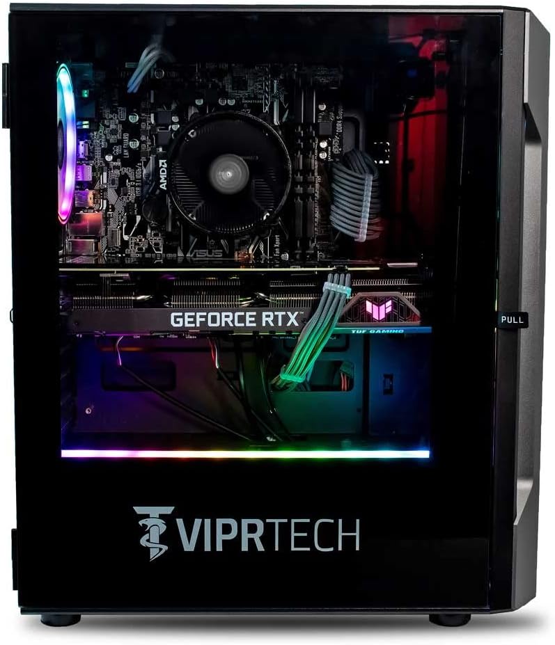 ViprTech Rebel 4.0 Gaming PC – AMD Ryzen 7 (4.1Ghz Turbo), RTX 4060 8GB, 32GB DDR4 3200, 1TB NVMe SSD, VR-Ready, Streaming, WiFi BT, RGB, Win 11 Pro, Prebuilt Desktop Computer Black