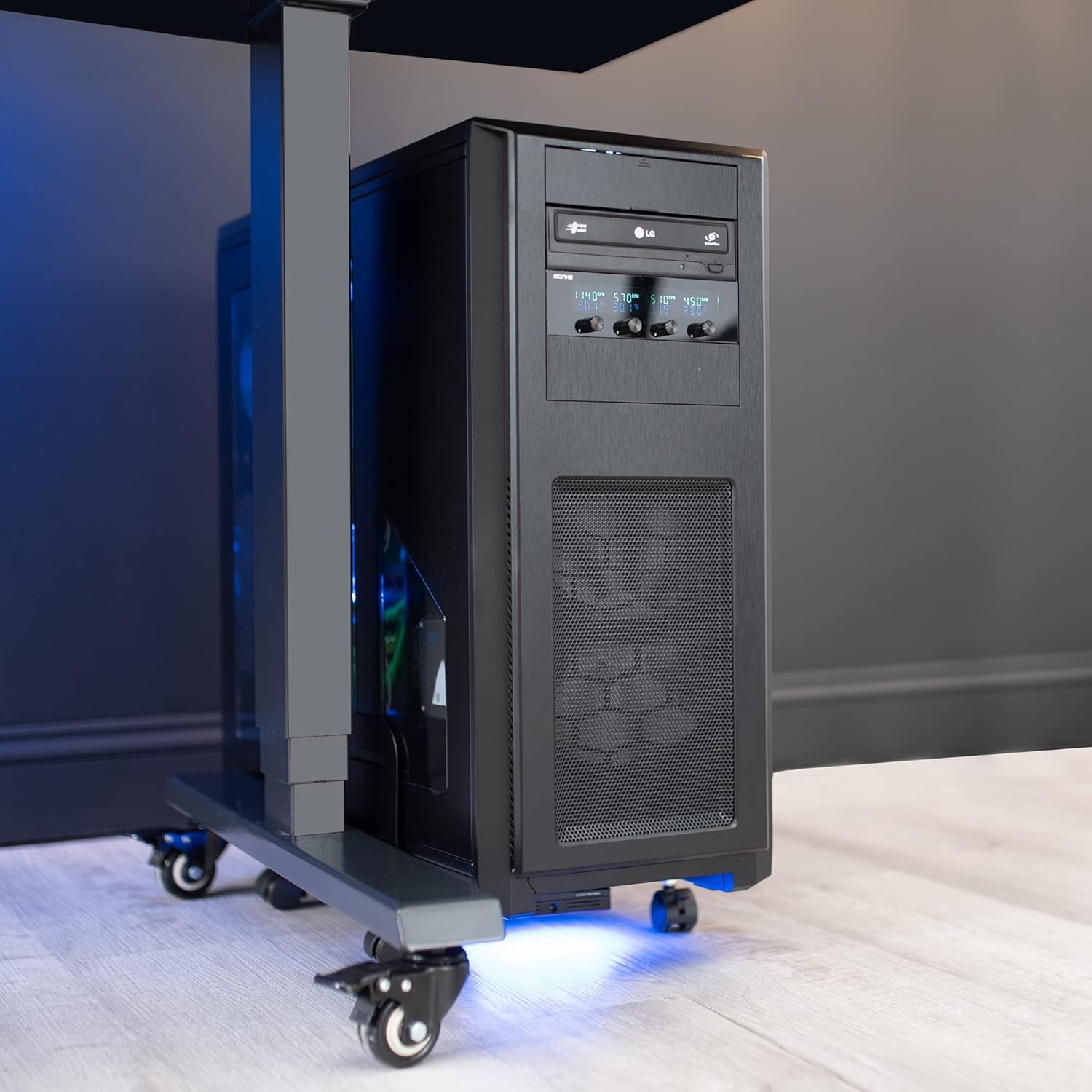VIVO Large Computer Tower Desktop ATX-Case, CPU Steel Rolling Stand, 7.8 to 14 inch Wide Adjustable Mobile Cart Holder with Locking Caster Wheels, Gaming PC Holder, Black, CART-PC01L