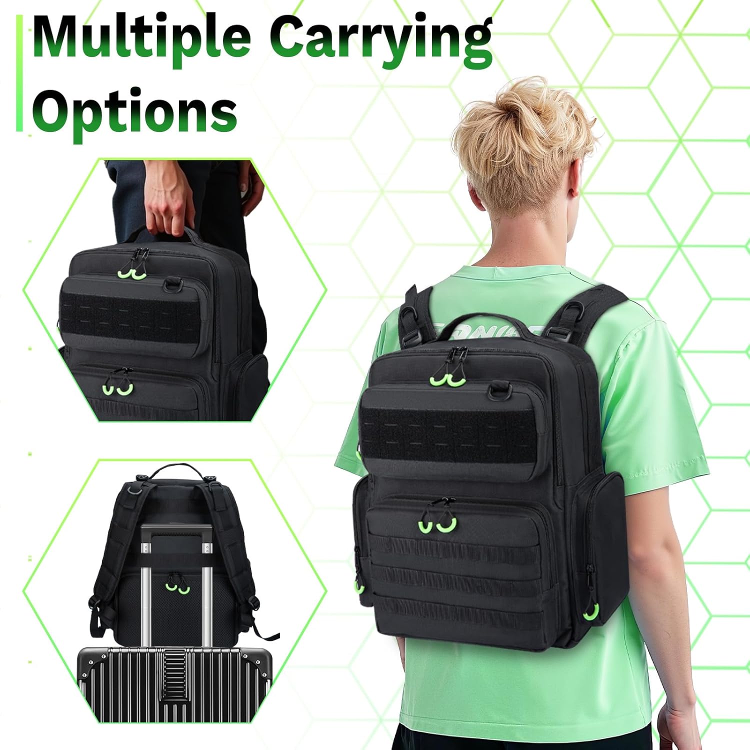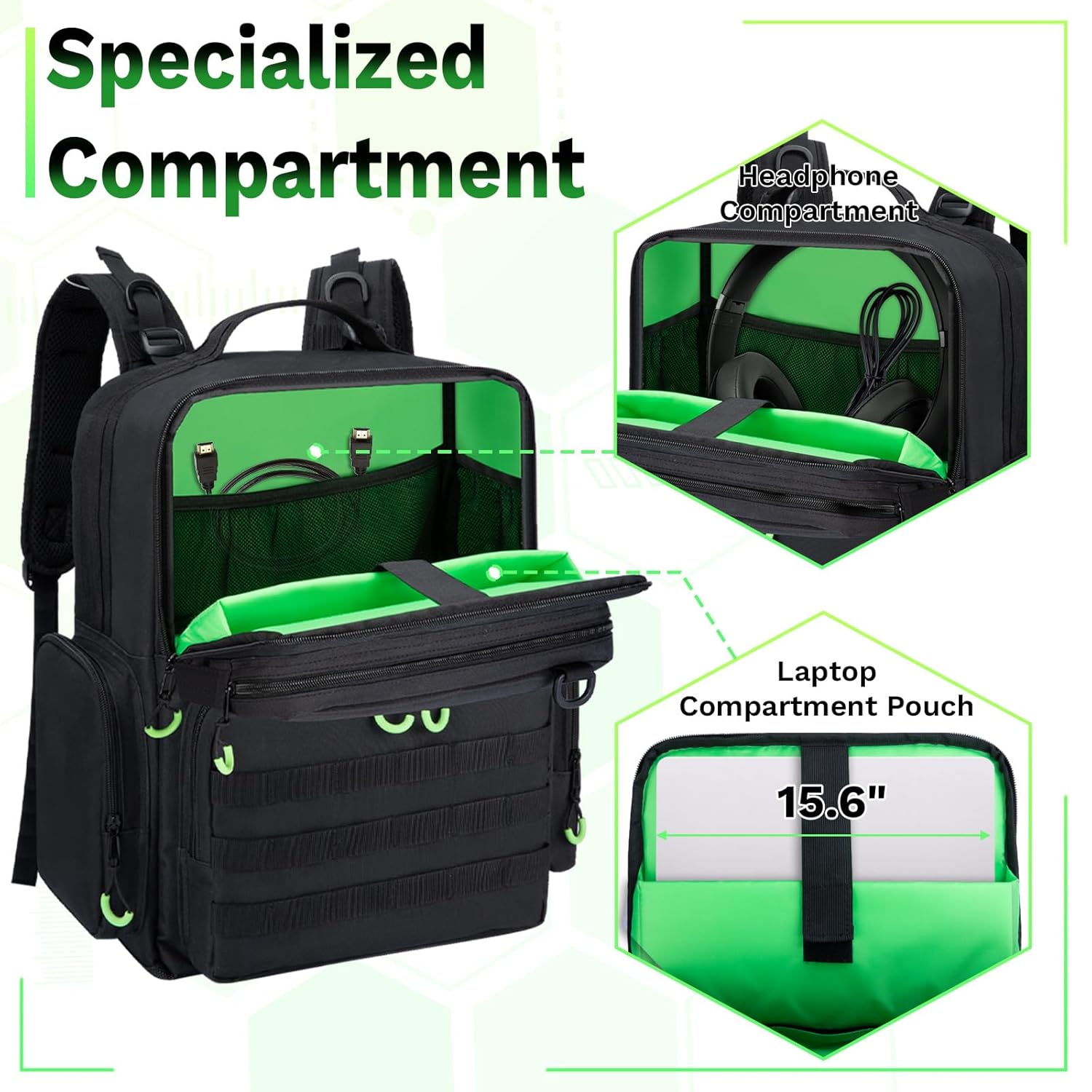 Wigojoy Travel Carrying Case Compatible with Xbox Series X/S, Multiple Pockets of Storage Space Tactical Portable Backpack , Accommodates 15.6” Laptop and Other Xbox Accessories, Green