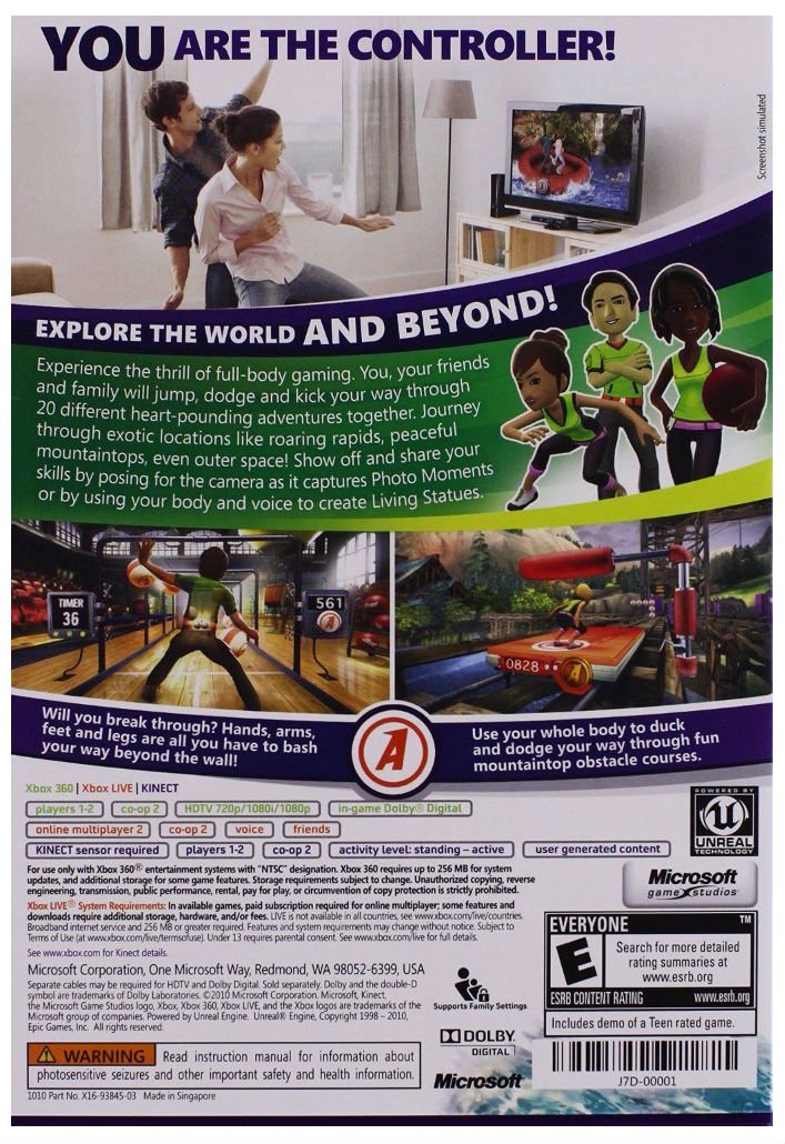♥ NOTE: We only accept Returns for 7 days. Buyers is entitled to pay the shipping. Please READ and UNDERSTAND before you purchase.♥ Product Identifiers Publisher Microsoft Game Kinect Adventures! UPC 5702014831643, 885370145106 Key Features Platform Microsoft Xbox 360 ESRB Rating E – Everyone Genre Action, Adventure Location USA Tech Details Number of Players 1-2 Release Year 2010 Game Special Features Embark on 20 lighthearted adventures alone or with a friend Use the Kinect to take pictures and video clips to share with others Includes basic, intermediate, and advanced difficulty settings