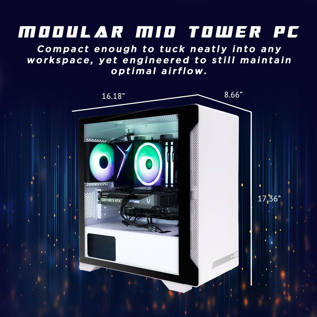 Don’t just play games—immerse yourself in them with the MEK Gaming PC, boasting NVIDIA AI-enhanced capabilities. Crafted by ZOTAC , renowned for their award-winning NVIDIA GeForce Graphics Cards and ZBOX Mini PCs, the MEK is meticulously designed and rigorously tested in the USA to ensure seamless gameplay. Say goodbye to bloatware with a clean installation of the Windows 11 Home and dive straight into gaming and content creation with optimized hardware. Experience intelligent gameplay and stunning visuals with the ZOTAC GAMING GeForce RTX 5060 8GB GDDR7 graphics card, equipped with AI-driven DLSS and real-time ray tracing technologies. Whether you’re battling foes or creating content, the MEK empowers you with exceptional multitasking capabilities, courtesy of the capable AMD Ryzen 5 7600 AM5 Desktop Processor. Enjoy faster loading times with 16GBs RGB DDR5 5200MT/s RAM and a lightning-quick 1TB NVMe M.2 SSD, while the 650-watt 80+ Gold Rated Power Supply ensures consistent power and reliability. Stay connected with various display ports, immersive 7.1 HD Audio, multiple USB ports, high-speed Ethernet, WiFi 5, and Bluetooth 5.2 connectivity. Compact and stylish, the MEK features a sleek tempered glass side panel and RGB LED 120mm fans for optimal cooling during intense gaming sessions. Maintenance is a breeze with easy-to-clean screwless filters, while professional cable management keeps the MEK neat, organized, and optimized for airflow. Transform your gaming experience today—upgrade to the MEK Gaming PC now!