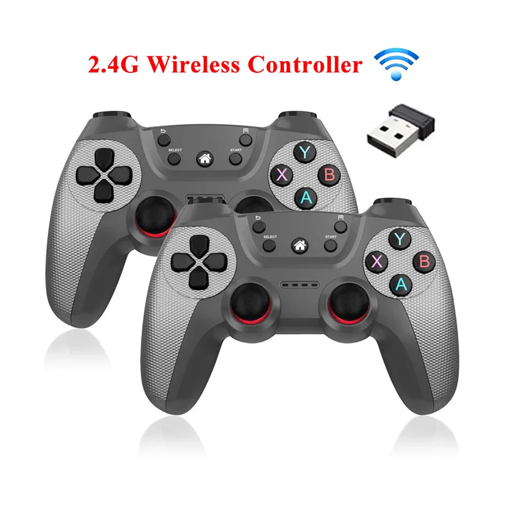 The 2.4G Wireless Double Game Controller Set is the perfect companion for Game Box, Game Stick, PC, and Smart TV Box systems. Featuring plug-and-play 2.4GHz wireless connectivity, these gamepads deliver responsive, lag-free performance for two players. With ergonomic design and smooth joystick control, they offer a comfortable and immersive gaming experience—perfect for family fun or competitive play.