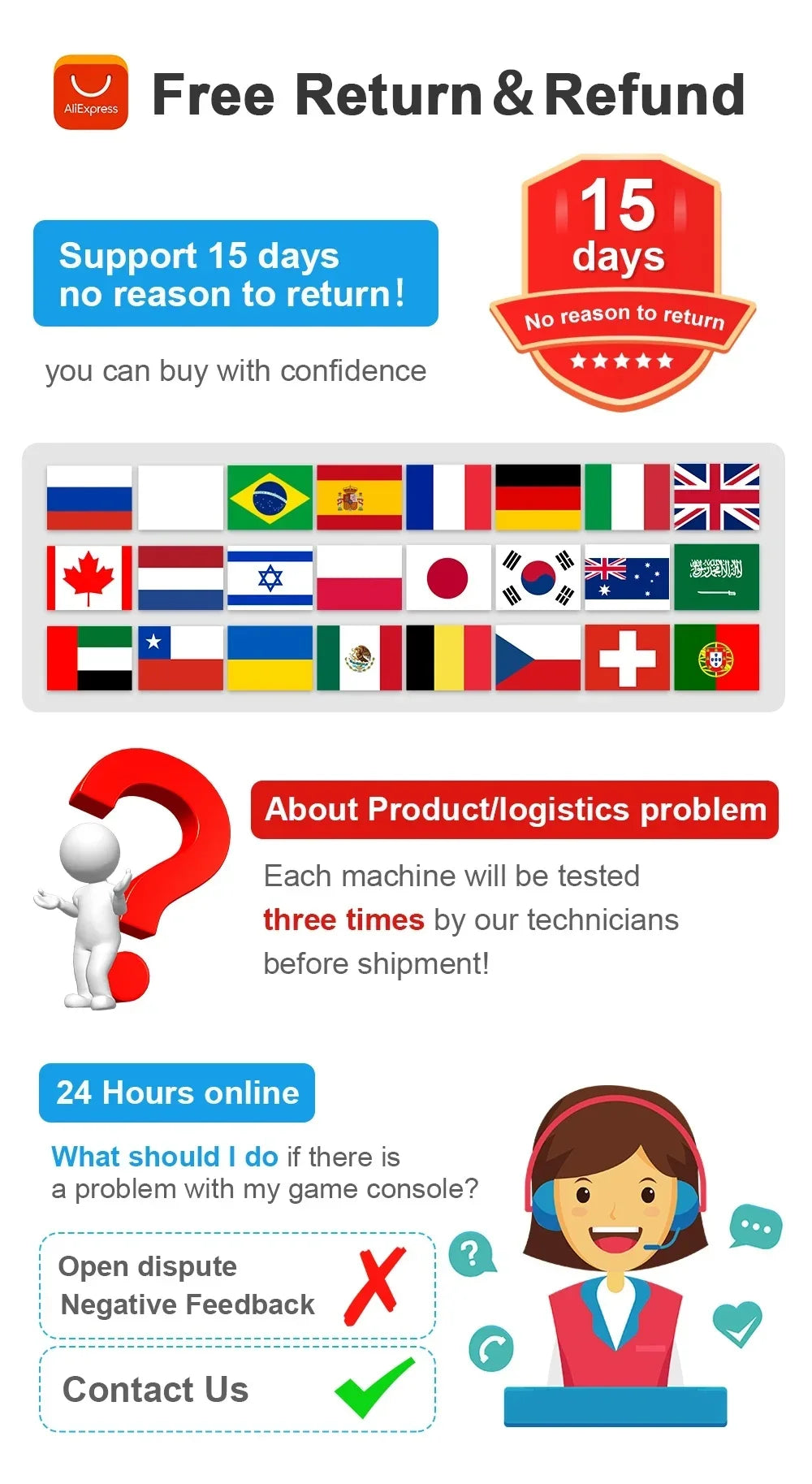Support free returns and exchanges without any reason, and you don't need to bear the shipping fee!