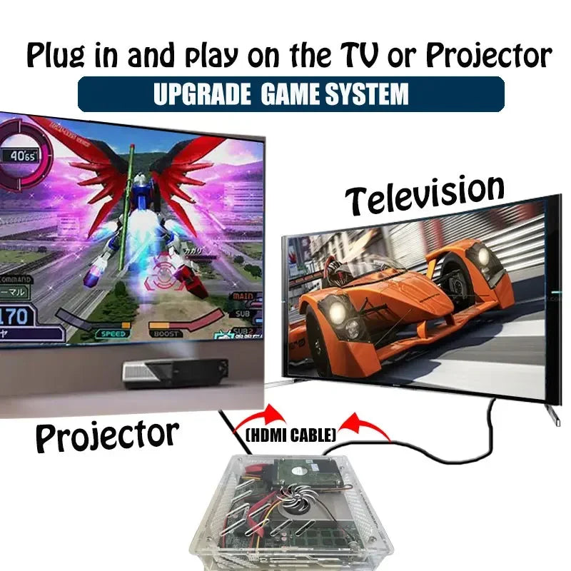 No need to configure system for hours!No need PC!our game console is ready for use!connect TV or projector and play!