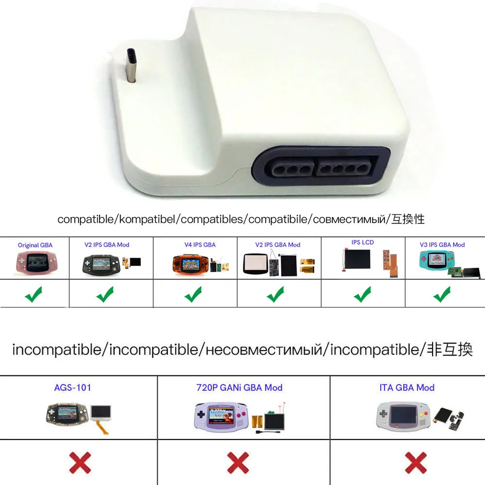 Newest 720P HDMI TV Dock Station GBA IPS LCD Mod Kits for Game boy Advance 32 PIn/40 Pin Support Play Games On TV