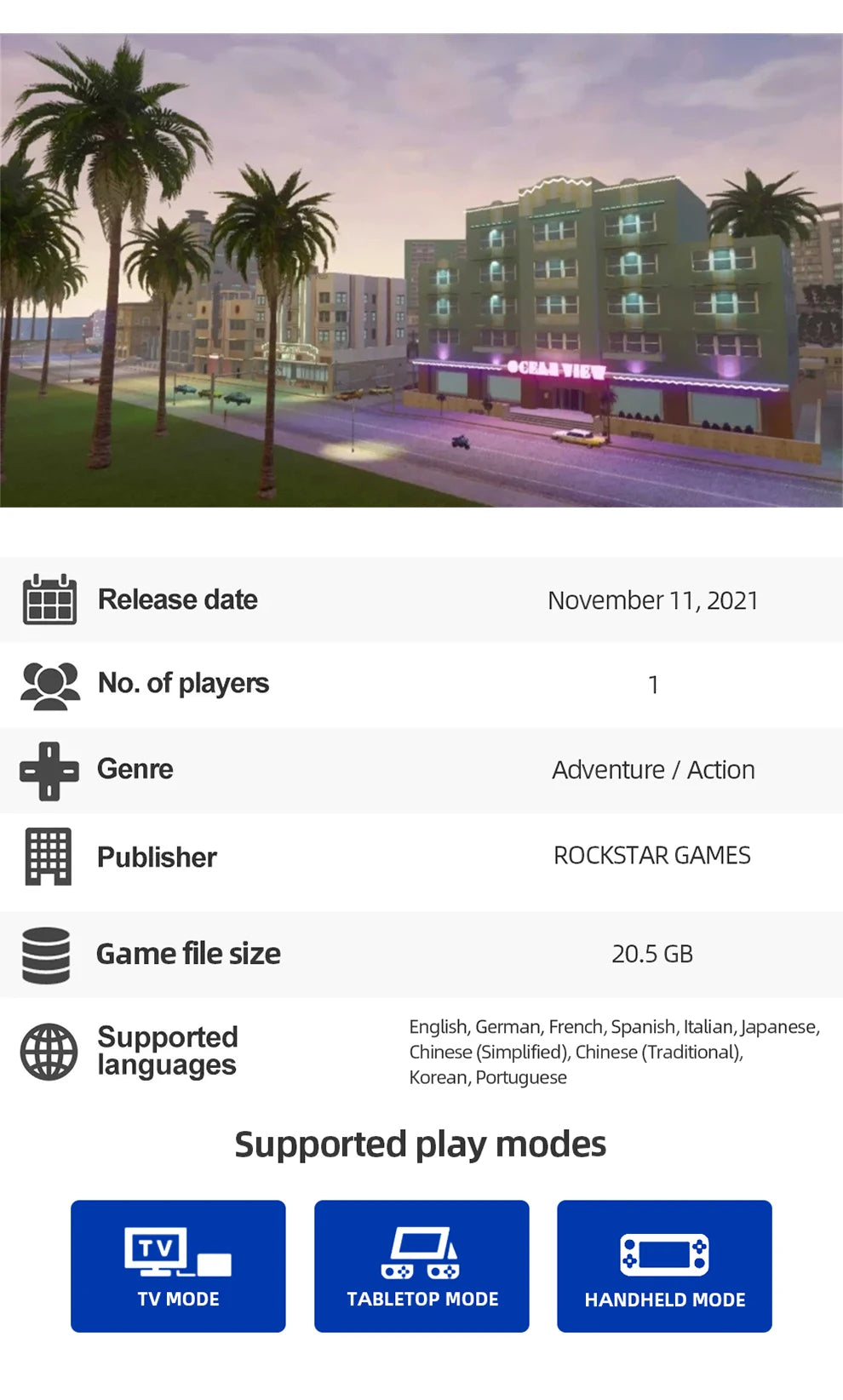 Supported Play Modes: TV mode, Tabletop Mode, Handheld Mode